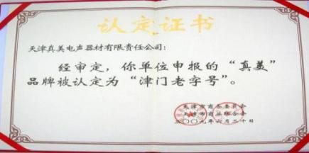 “真美”的中华老字号品牌起源于天津真美电声器材有限公司。该公司最早的前身是1948年2月由叶自侨先生创办的天津真美电机行,它原本是一家维修电机、电器的私营小作坊,其中主要的业务之一是维修扬声器。当时国内市场上是美国生产的九头鸟扬声器占据重要地位,由于该种扬声器音膜的损坏比较多,配件进口困难,叶先生和电机行的技师就自己试验压制音膜并获得成功。受此鼓舞,叶先生不断扩大自制零部件的种类和加工能力,有将真美电机行扩大为三个店铺。