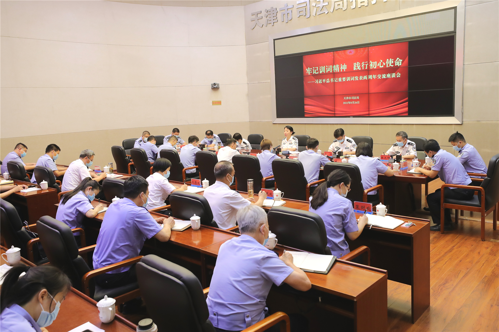 日前,市司法局召开“牢记训词精神 践行初心使命”习近平总书记重要训词发表两周年交流座谈会,重温习近平总书记重要训词精神,交流践行总书记重要训词精神体会,教育引导全市司法行政系统广大干警忠实履行好党和人民赋予的新时代使命任务。市司法局党委书记、局长,市监狱局第一政委(兼)王红卫出席会议并讲话。
