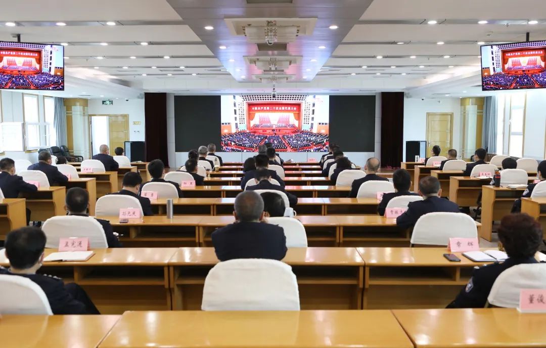 市司法局在机关报告厅设置主会场,市司法局班子成员、二级巡视员及处级以上领导干部和全体干警在主会场进行了集中观看。市监狱局、市戒毒局和各监所,市律师协会、市公证协会分别组织党员干部在各自分会场集中收听收看。居家备勤的监狱、戒毒人民警察采取多种方式进行观看。
